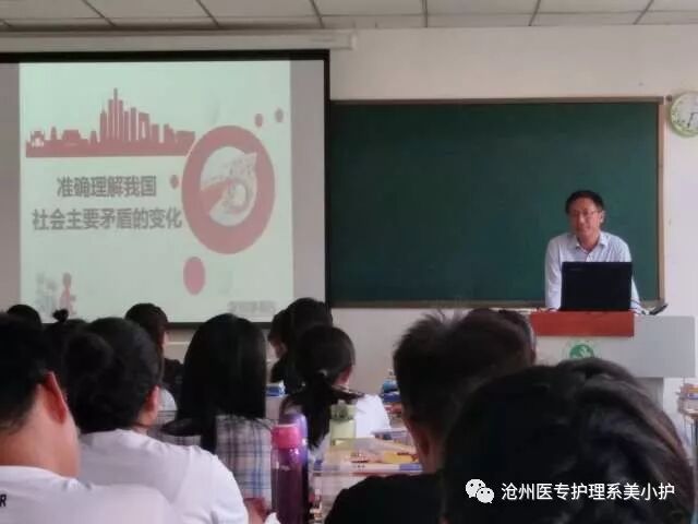 2018年6月1日,我校党委刘建书记在百忙之中再次走进护理系,为护理17-19班学生上了一堂“准确理解我国社会主要矛盾变化”的党课。